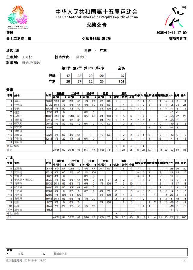 最后一节,天津队并没有真正投降,依旧在疯狂追分,毕竟小组赛之后还要计算净胜分,每一次机会都不能白白浪费掉的。当然,广东队的强大,绝非天津队能够逆转的。最终,广东U22男篮有惊无险地以105-82大胜天津队,小组赛3战全胜,以小组第一身份晋级8强。