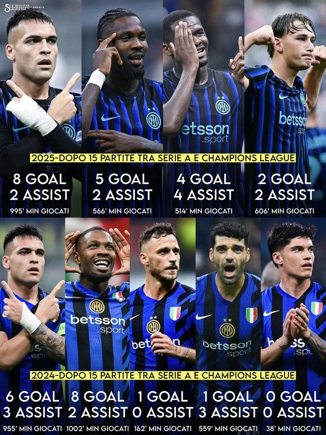 其他球员都是从替补轮换打起,但也展现出了应有的价值。博尼和皮奥的到来实现了锋线上的年轻化升级,在小图拉姆受伤期间,也能很好发挥出替补轮换作用,博尼15场4球4助,皮奥13场2球2助,很好分担了队长劳塔罗的进球压力。跟上赛季同期相比,两人的进攻数据明显要亮眼非常多,这也证明了一点那就是人不在多而在于精!
