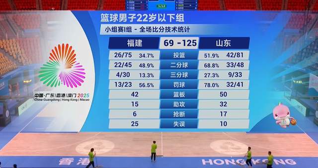 你以为领先那么多,山东队就会敷衍了事了吗?答案是都否定的!山东队的小伙子依旧火力全开,把分差从40+扩大到了50+,丝毫不给福建队反扑的机会。不得不说,巩晓彬带队之下,山东队的小伙子还真就是没有一个敢松懈的。最终,山东队凭借末节打成37-19,以125-69大胜福建56分,轻松斩获3连胜,锁定一个8强席位。