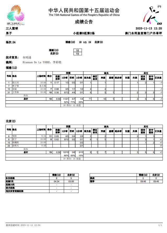 全运会三人男篮项目火热进行中,B组的第二场比赛打响,由北京队对阵福建队。北京队拥有邹阳、张宁、杨曦皓和 俞皓天,福建队则是拥有王哲林、郑毅、林子策和陈江河。