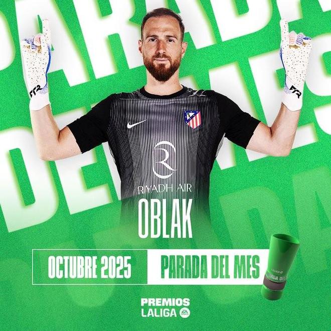 官方:奥布拉克对奥萨苏纳的近距离扑救当选西甲10月最佳扑救